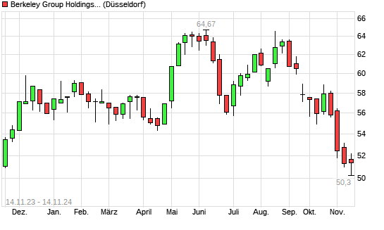 Mit dem Rücksetzer auf 50,45 EUR hat die Berkeley Group Holdings-Aktie (ISIN GB00BP0RGD03) am 13.11.2024 ein neues 6-Monats-Tief erreicht und damit den Kurs vom 07.11.2024 eingestellt.