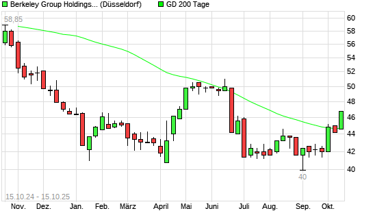 Mit dem Anstieg auf 45,00 EUR hat die Berkeley Group Holdings-Aktie am 14.10.2025 die 200-Tage-Linie nach oben gekreuzt.