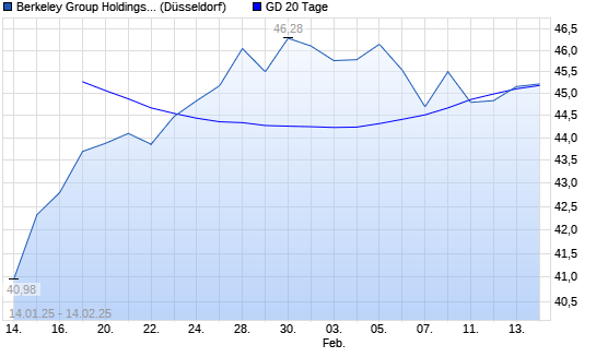 Mit dem Rücksetzer auf 44,92 EUR hat die Berkeley Group Holdings-Aktie am 13.02.2025 die 20-Tage-Linie nach unten gekreuzt.