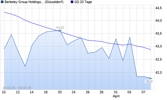 Mit dem Rücksetzer auf 40,00 EUR hat die Berkeley Group Holdings-Aktie am 07.04.2025 die 20-Tage-Linie nach unten gekreuzt.