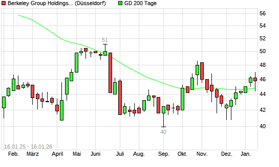 Mit dem Rücksetzer auf 44,80 EUR hat die Berkeley Group Holdings-Aktie am 15.01.2026 die 200-Tage-Linie nach unten gekreuzt.