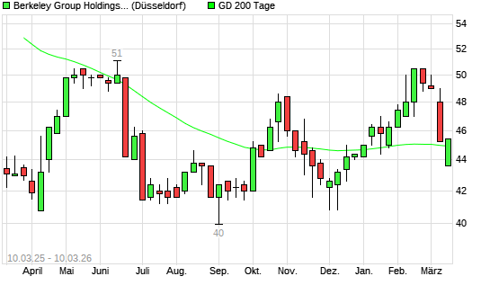 Mit dem Rücksetzer auf 44,40 EUR hat die Berkeley Group Holdings-Aktie am 09.03.2026 die 200-Tage-Linie nach unten gekreuzt.