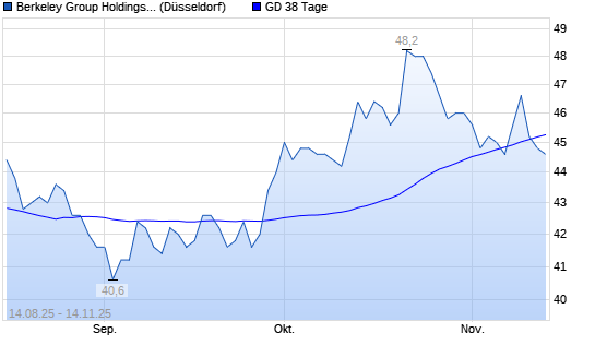 Mit dem Rücksetzer auf 45,00 EUR hat die Berkeley Group Holdings-Aktie am 13.11.2025 die 38-Tage-Linie nach unten gekreuzt.