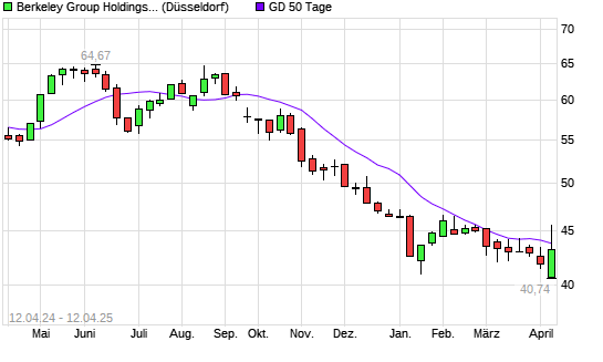 Mit dem Rücksetzer auf 43,40 EUR hat die Berkeley Group Holdings-Aktie am 11.04.2025 die 50-Tage-Linie nach unten gekreuzt.