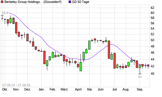 Mit dem Rücksetzer auf 41,60 EUR hat die Berkeley Group Holdings-Aktie am 26.09.2025 die 50-Tage-Linie nach unten gekreuzt.