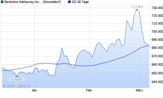 Mit dem Anstieg auf 685.500,00 EUR hat die Berkshire Hathaway A-Aktie am 07.03.2025 die 38-Tage-Linie nach oben gekreuzt.