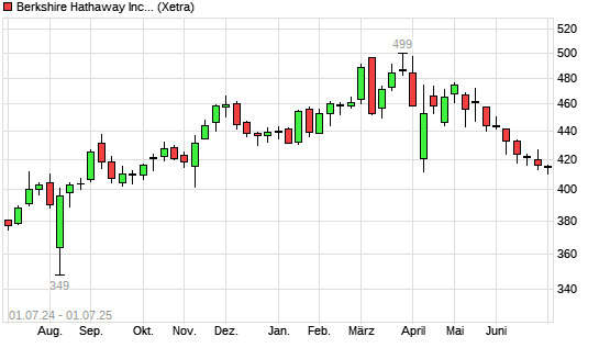 Mit dem Rücksetzer auf 412,55 EUR hat die Berkshire Hathaway B-Aktie (ISIN US0846707026) am 30.06.2025 ein neues 6-Monats-Tief erreicht und damit den Kurs vom 27.06.2025 eingestellt.