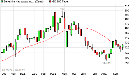 Mit dem Anstieg auf 424,70 EUR hat die Berkshire Hathaway B-Aktie am 25.09.2025 die 100-Tage-Linie nach oben gekreuzt.
