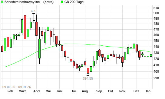 Mit dem Anstieg auf 429,85 EUR hat die Berkshire Hathaway B-Aktie am 08.01.2026 die 200-Tage-Linie nach oben gekreuzt.