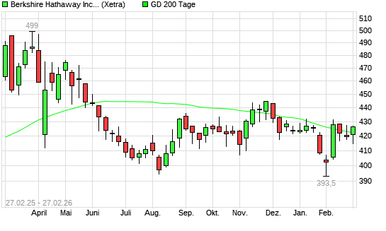 Mit dem Anstieg auf 426,15 EUR hat die Berkshire Hathaway B-Aktie am 26.02.2026 die 200-Tage-Linie nach oben gekreuzt.