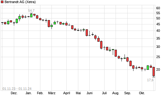 Mit dem Rücksetzer auf 17,85 EUR hat die Bertrandt-Aktie (ISIN DE0005232805) am 31.10.2024 ein neues 10-Jahres-Tief erreicht und damit den Kurs vom 29.10.2024 eingestellt.
