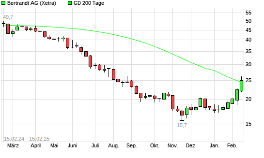 Mit dem Anstieg auf 24,30 EUR hat die Bertrandt-Aktie am 14.02.2025 die 200-Tage-Linie nach oben gekreuzt.