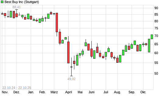 Mit dem Anstieg auf 69,11 EUR hat die Best Buy-Aktie (ISIN US0865161014) am 21.10.2025 ein neues 6-Monats-Hoch erreicht und damit den Kurs vom 20.10.2025 eingestellt.