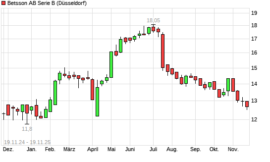 Mit dem Rücksetzer auf 12,67 EUR hat die Betsson-Aktie (ISIN SE0022726485) am 18.11.2025 ein neues 6-Monats-Tief erreicht und damit den Kurs vom 11.11.2025 eingestellt.