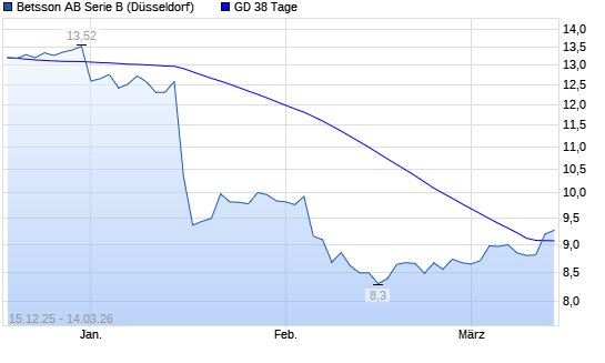 Mit dem Anstieg auf 9,14 EUR hat die Betsson-Aktie am 13.03.2026 die 38-Tage-Linie nach oben gekreuzt.
