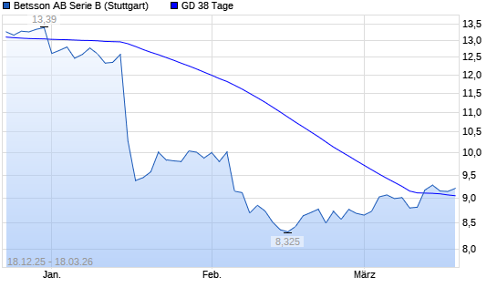 Mit dem Rücksetzer auf 9,04 EUR hat die Betsson-Aktie am 17.03.2026 die 38-Tage-Linie nach unten gekreuzt.