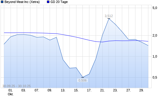 Mit dem Rücksetzer auf 1,57 EUR hat die Beyond Meat-Aktie am 29.10.2025 die 20-Tage-Linie nach unten gekreuzt.