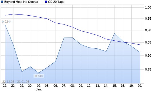 Mit dem Rücksetzer auf 0,78 EUR hat die Beyond Meat-Aktie am 20.01.2026 die 20-Tage-Linie nach unten gekreuzt.Die Beyond Meat-Aktie befindet sich seit dem 23.10.2025 im langfristigen Abwärtstrend ...weiterlesen