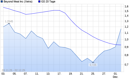 Mit dem Anstieg auf 1,14 EUR hat die Beyond Meat-Aktie am 01.12.2025 die 20-Tage-Linie nach oben gekreuzt.Die Beyond Meat-Aktie befindet sich seit dem 23.10.2025 im langfristigen Abwärtstrend ...weiterlesen