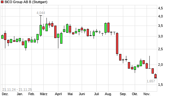 Mit dem Rücksetzer auf 1,67 EUR hat die Bico Group (ex Cellink)-Aktie (ISIN SE0013647385) am 20.11.2025 ein neues All-Time-Low erreicht und damit den Kurs vom 19.11.2025 eingestellt.