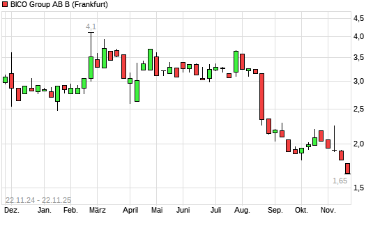 Mit dem Rücksetzer auf 1,63 EUR hat die Bico Group (ex Cellink)-Aktie (ISIN SE0013647385) am 21.11.2025 ein neues All-Time-Low erreicht und damit den Kurs vom 20.11.2025 eingestellt.