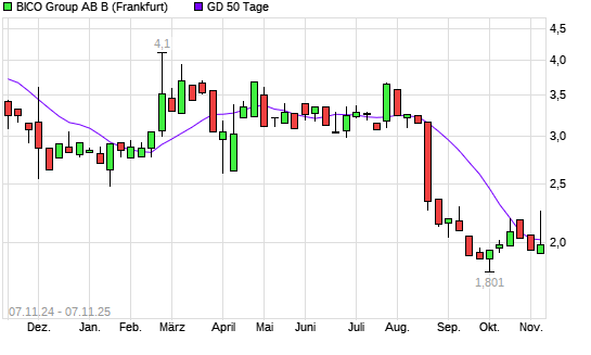 Mit dem Rücksetzer auf 1,93 EUR hat die Bico Group (ex Cellink)-Aktie am 06.11.2025 die 50-Tage-Linie nach unten gekreuzt.Die Bico Group (ex Cellink)-Aktie befindet sich seit dem 19.08.2025 ...weiterlesen
