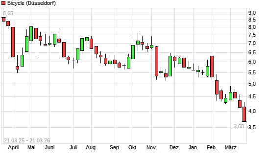 Mit dem Rücksetzer auf 3,66 EUR hat die Bicycle-Aktie (ISIN US0887861088) am 20.03.2026 ein neues All-Time-Low erreicht und damit den Kurs vom 19.03.2026 eingestellt.