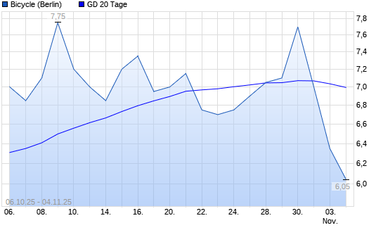 Mit dem Anstieg auf 6,85 EUR hat die Bicycle-Aktie am 03.11.2025 die 20-Tage-Linie nach oben gekreuzt.