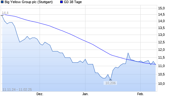 Mit dem Anstieg auf 11,00 EUR hat die Big Yellow Group-Aktie am 10.02.2025 die 38-Tage-Linie nach oben gekreuzt.