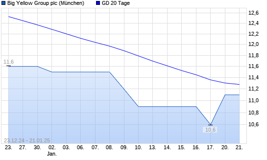 Mit dem Rücksetzer auf 10,60 EUR hat die Big Yellow Group-Aktie am 20.01.2025 die 20-Tage-Linie nach unten gekreuzt.