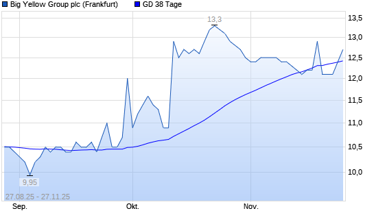 Mit dem Anstieg auf 12,40 EUR hat die Big Yellow Group-Aktie am 26.11.2025 die 38-Tage-Linie nach oben gekreuzt.Die Big Yellow Group-Aktie befindet sich seit dem 13.10.2025 im langfristigen ...weiterlesen