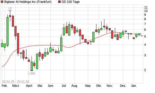 Mit dem Rücksetzer auf 5,13 EUR hat die BigBear.ai-Aktie am 19.01.2026 die 100-Tage-Linie nach unten gekreuzt.