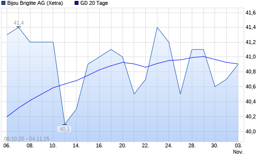 Mit dem Rücksetzer auf 40,50 EUR hat die Bijou Brigitte-Aktie am 03.11.2025 die 20-Tage-Linie nach unten gekreuzt.