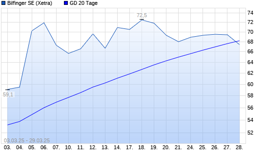 Mit dem Rücksetzer auf 67,00 EUR hat die Bilfinger-Aktie am 28.03.2025 die 20-Tage-Linie nach unten gekreuzt.