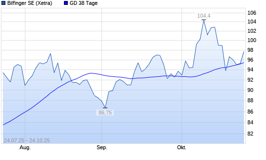 Mit dem Rücksetzer auf 94,90 EUR hat die Bilfinger-Aktie am 23.10.2025 die 38-Tage-Linie nach unten gekreuzt.