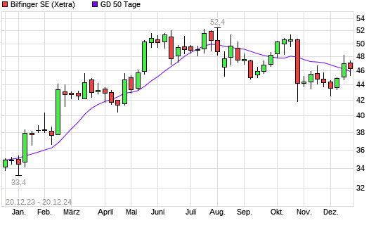 Mit dem Rücksetzer auf 45,35 EUR hat die Bilfinger-Aktie am 19.12.2024 die 50-Tage-Linie nach unten gekreuzt.