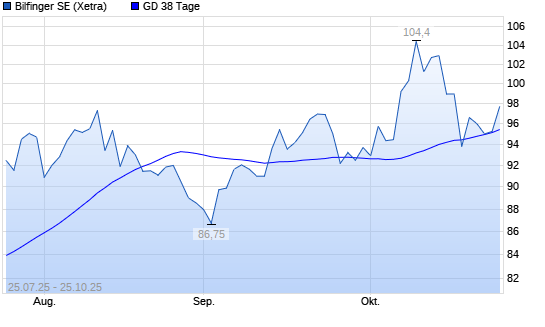 Mit dem Anstieg auf 97,30 EUR hat die Bilfinger-Aktie am 24.10.2025 die 38-Tage-Linie nach oben gekreuzt.Die Bilfinger-Aktie befindet sich seit dem 22.01.2025 im langfristigen Aufwärtstrend ...weiterlesen