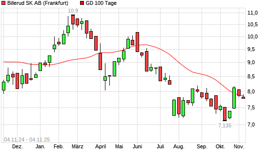 Mit dem Anstieg auf 7,90 EUR hat die Billerud SK AB-Aktie am 03.11.2025 die 100-Tage-Linie nach oben gekreuzt.