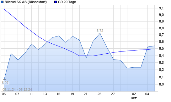 Mit dem Anstieg auf 8,41 EUR hat die BillerudKorsnäs-Aktie am 04.12.2024 die 20-Tage-Linie nach oben gekreuzt.