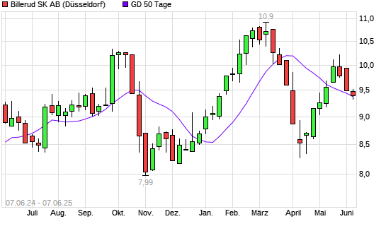 Mit dem Anstieg auf 9,27 EUR hat die BillerudKorsnäs-Aktie am 06.06.2025 die 50-Tage-Linie nach oben gekreuzt.