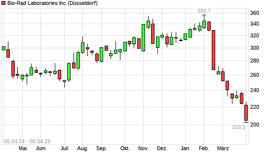 Mit dem Rücksetzer auf 209,70 EUR hat die Bio-Rad Laboratories-Aktie (ISIN US0905722072) am 04.04.2025 ein neues 5-Jahres-Tief erreicht und damit den Kurs vom 03.04.2025 eingestellt.