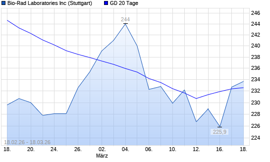 Mit dem Anstieg auf 232,40 EUR hat die Bio-Rad Laboratories-Aktie am 17.03.2026 die 20-Tage-Linie nach oben gekreuzt.