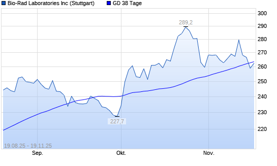 Mit dem Anstieg auf 266,30 EUR hat die Bio-Rad Laboratories-Aktie am 18.11.2025 die 38-Tage-Linie nach oben gekreuzt.