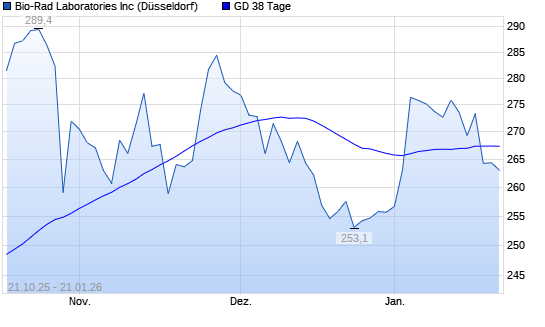 Mit dem Anstieg auf 266,80 EUR hat die Bio-Rad Laboratories-Aktie am 20.01.2026 die 38-Tage-Linie nach oben gekreuzt.