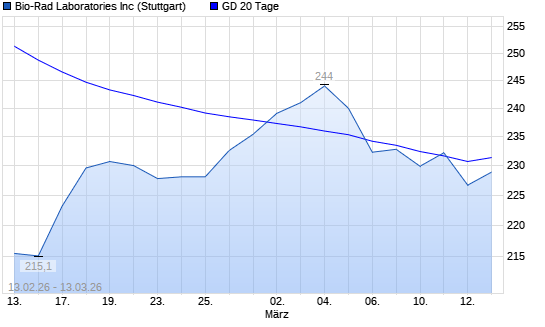 Mit dem Rücksetzer auf 225,90 EUR hat die Bio-Rad Laboratories-Aktie am 12.03.2026 die 20-Tage-Linie nach unten gekreuzt.