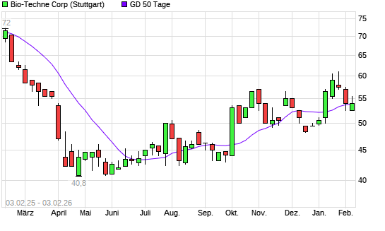 Mit dem Anstieg auf 54,50 EUR hat die Bio-Techne-Aktie am 02.02.2026 die 50-Tage-Linie nach oben gekreuzt.