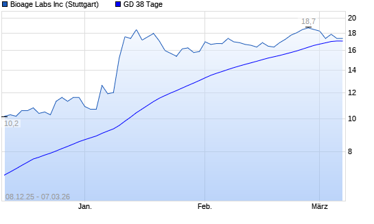 Mit dem Rücksetzer auf 16,90 EUR hat die BioAge Labs-Aktie am 06.03.2026 die 38-Tage-Linie nach unten gekreuzt.