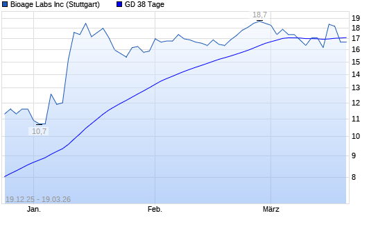 Mit dem Rücksetzer auf 16,90 EUR hat die BioAge Labs-Aktie am 18.03.2026 die 38-Tage-Linie nach unten gekreuzt.