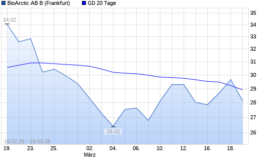 Mit dem Anstieg auf 29,66 EUR hat die BioArctic AB B-Aktie am 18.03.2026 die 20-Tage-Linie nach oben gekreuzt.