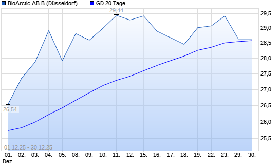 Mit dem Rücksetzer auf 28,82 EUR hat die BioArctic AB B-Aktie am 29.12.2025 die 20-Tage-Linie nach unten gekreuzt.Der Abstand zur 200-Tage-Linie beträgt aktuell +32,20%. ##trendBox## Die ...weiterlesen